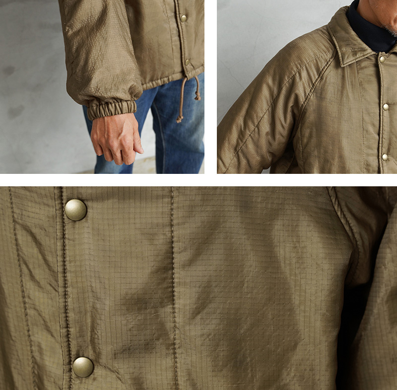 WAIPER.incで米海兵隊のポンチョライナーを使用し、軽くて保温性に優れたコーチジャケットを製作しました!肌触りの良いキルティング素材で、非常に着心地もよい一着となっております。