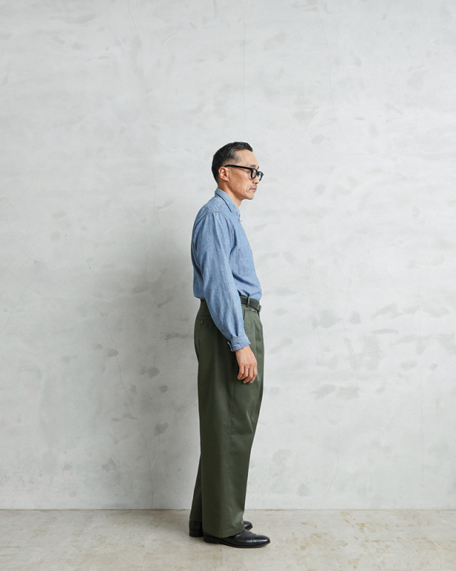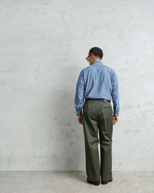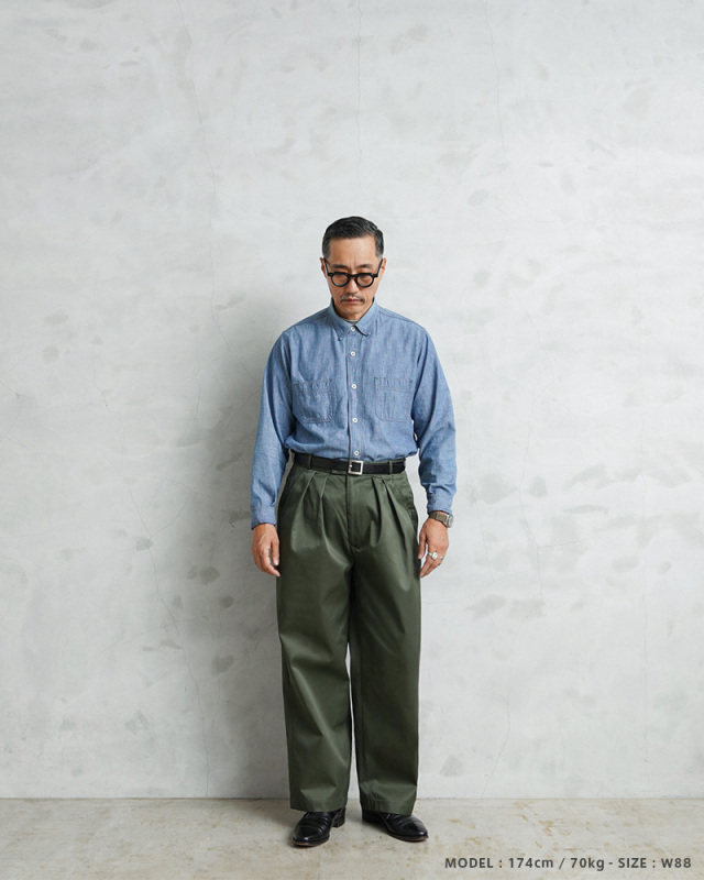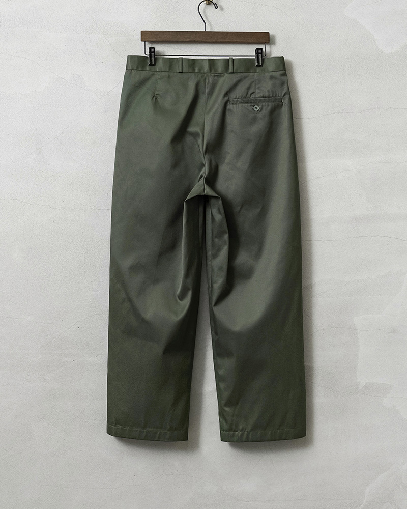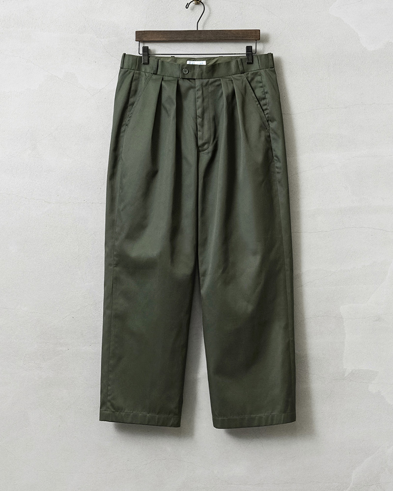 | 商品名 | WAIPER.inc 実物 新品 デッドストック フランス軍 リメイク T/Cツイル DEEP TWO TUCK トラウザーズ OLIVE |