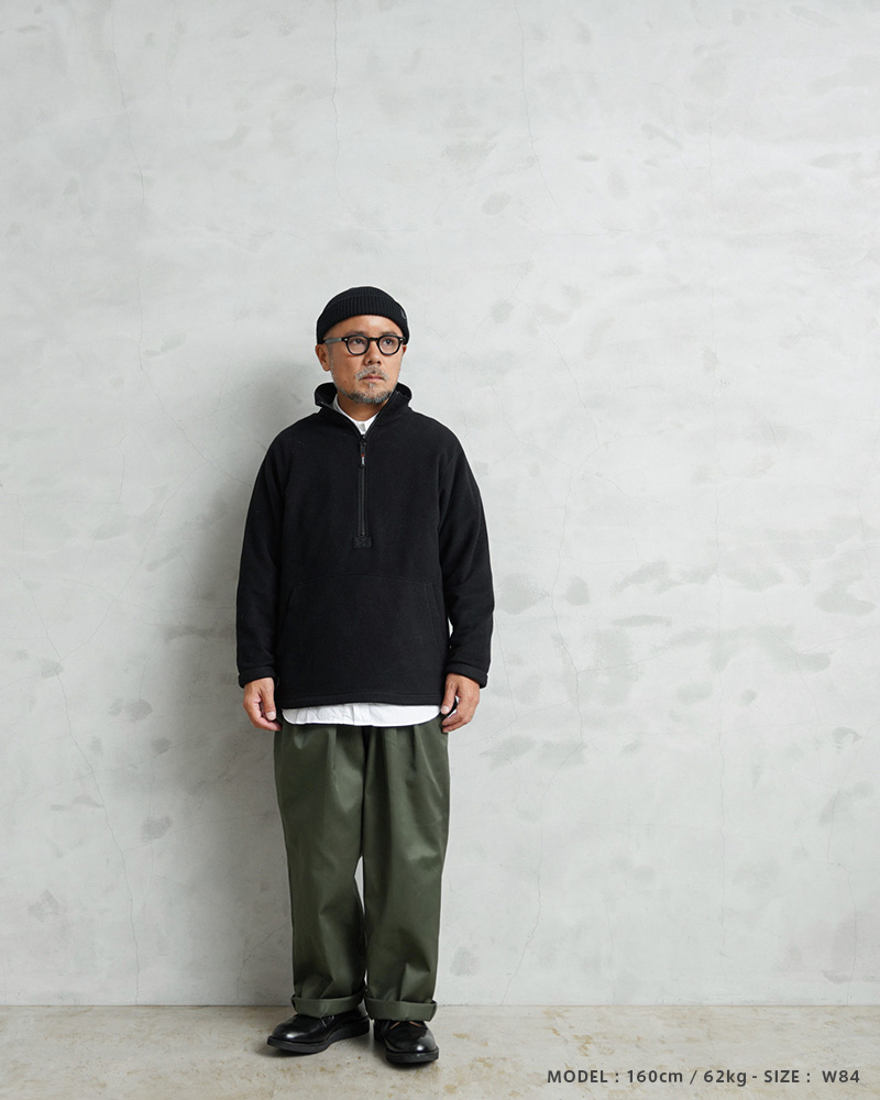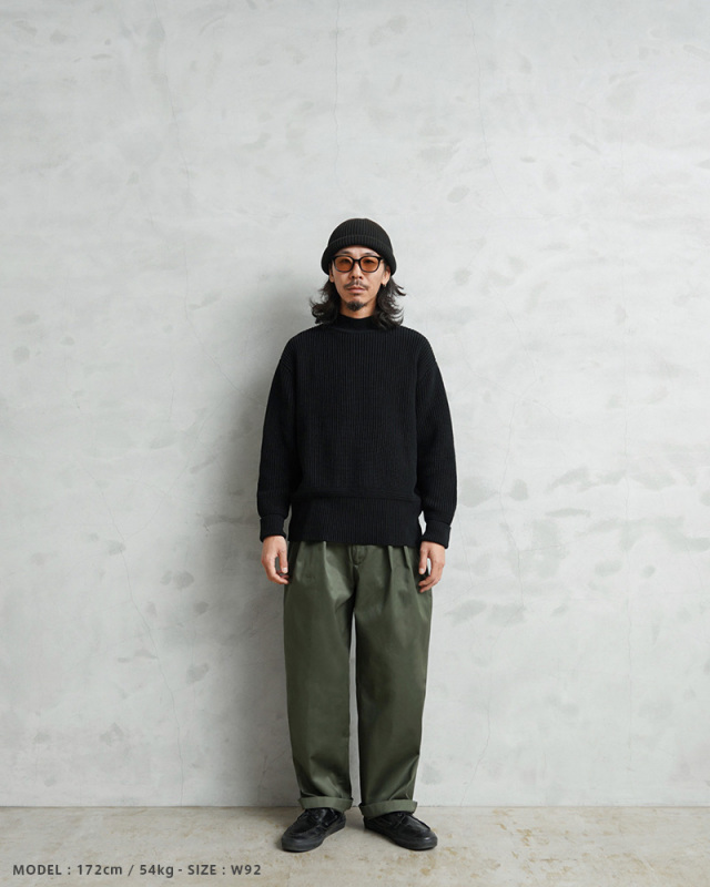 | 商品説明 | WAIPER.inc 実物 新品 デッドストック フランス軍 リメイク T/Cツイル DEEP TWO TUCK トラウザーズ OLIVEのご紹介です。 フランス軍から放出されたオリーブカラーのユーティリティトラウザーズは、シンプルな見た目に絶妙な光沢感とハリのあるT/Cツイルが使用された上質なパンツです。 こちらのアイテムを使用し、日本国内でフロントに深いツータックを入れたリメイクを施しました。100cm以上あったウエストサイズから3サイズ展開のウエストを制作、レングスも適度な丈感にリメイクしていますので、ゆったりしたバランスの良いシルエットに変更しています。 フロントはジッパーフライ開閉で、腰回りに程よいボリュームを与えつつ、センタークリースが入ることで立体的なフォルムができ、穿き方やコーディネート次第でカジュアルから、キレイめな着こなしにもマッチします。 両サイドには使い勝手の良いスラッシュポケット、バックポケットは右側に片玉縁のポケットが付属するデザインです。ウエストボタンはパンツの持ち出しが長めで、ボタンとホックで固定されます。F-2ジャケット、F-2パーカーなどの様々なフランス軍の王道アイテムも納入していた信頼の高いサプライヤーが製造したアイテムです。 緩やかなテーパードシルエットが足長効果が期待でき、スラックスの様な表情がカジュアルな中にも品の良さを感じさせます。深いツータックシルエットが魅力のリメイクトラウザーズです。 |