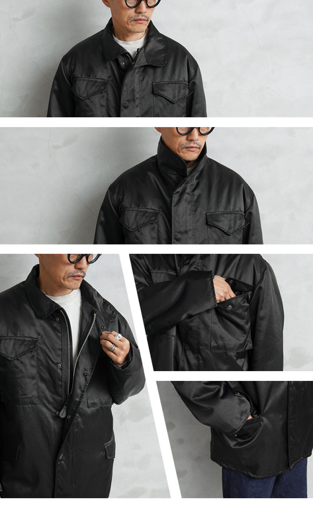 | 商品説明 | CONCORD コンコルド 90’s MADE IN USA RAY-P-TEX LINE M-65 フィールドジャケットのご紹介です。 CONCORDは米軍への納入実績のあるALPHA INDUSTRIES(アルファ インダストリーズ)がヨーロッパ市場に向けて製造していたブランドになりますが、素材や生産国もアメリカ製になります。 一説では、ラベルはCONCORDではない場合もありますが、アメリカの軍警察(MP/MILITARY POLICE)や、各種法執行機関などで採用された実績があると言われているジャケットです。 M-65フィールドジャケットタイプの形状で、中綿入りのキルティング裏地が付属する保温性の高いアイテムで、最大の特徴は、RAY-P-TEX(レイピーテックス)と呼ばれる特別なアウターシェル素材。デュポン社が開発した高強度のAntron®ナイロンとレーヨン(ビスコースフィラメント糸)を組み合わせた独自構造で、上品な光沢と柔らかさを備えながら、驚くほどの耐久性を実現しています。素材の風合いは、サテンとコーデュラを融合したような質感と評され、非常に快適な着心地です。 スナップボタン開閉の胸ポケット2つ、腰ポケット2つの計4つのフロントポケット、比翼仕立てで、ジッパーには80~90年代に使用されていた「IDEAL」が使用されたヴィンテージ感漂うハイスペックな作りに、腕周りの動きをスムーズにするアクションプリーツなど、クラシックなミリタリーディテールを踏襲しています。 上質な光沢感が魅力で、中綿入りの防寒性の高いアメリカ製M-65ジャケットのデッドストックです! MADE IN USA |