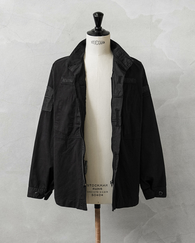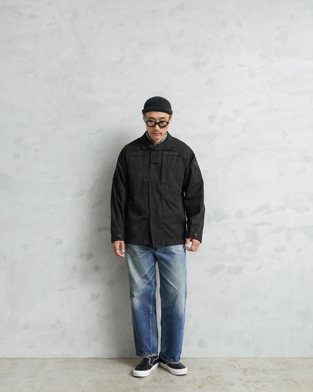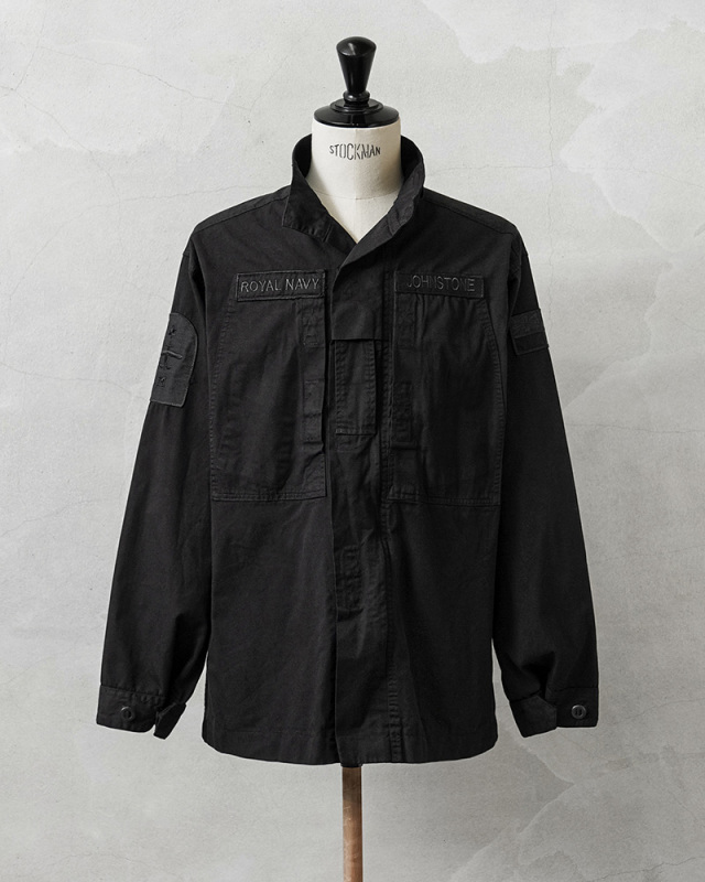 | 商品説明 | 実物 USED イギリス軍 ROYAL NAVY PCS コンバットジャケット DEEP BLACK染めのご紹介です。 制式名称:JACKET,COMBAT,WARM WEATHER,NAVY BLUE,FR,RN イギリス海軍より放出された温帯気候用・難燃性のコンバットジャケットが登場。 アメリカ軍のECWCSのように気候に合わせて複数の被服をレイヤリングする、イギリス軍独自のレイヤリングシステムであるPCS(Personal Clothing System)を構成するアイテムの1つです。 今回は人気で希少なこのアイテムを贅沢にDEEP BLACK染めを施しました!ポリエステル混紡のコットンポリ素材は、真っ黒に染めることが難しい素材ながら、特殊な染色を行うことで、通常の製品染めに比べても深くしっかりと染まったDEEP BLACK仕様となっています。 前開きはファスナーとベルクロで開閉する二重構造。左右の胸ポケット(マップポケット)にはコンパスやペンなどを収納できるよう、インナーポケットが設けられています。スタンドカラーにはチンストラップ付き。 軍モノながらスッキリめのシルエットが特徴的な一着。薄手のポリコットン素材ですので、ジャケットとしてだけではなくインナーとしても着回せる、さり気なく見える様々なパッチが良い雰囲気のアイテムです。 |