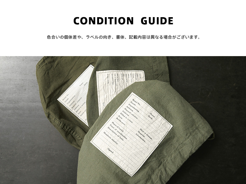 | 商品状態 | 軍放出のUSED ※こちらの商品はUSED品です。色合いの個体差や、ラベルの向き、書体、記載内容は異なる場合がございます。商品の状態についてご指定いただくことは出来ませんので予めご了承ください。 |
