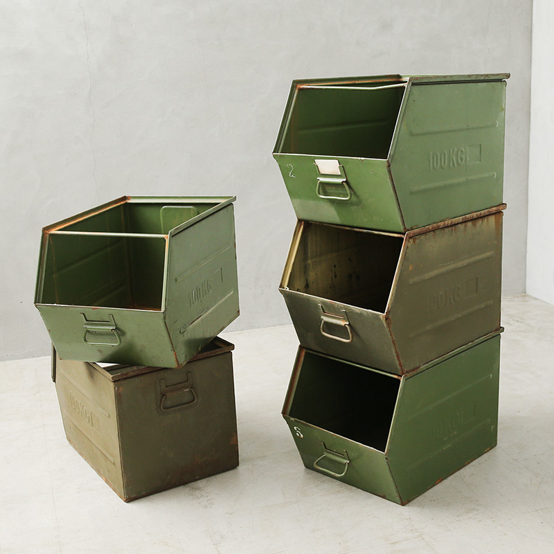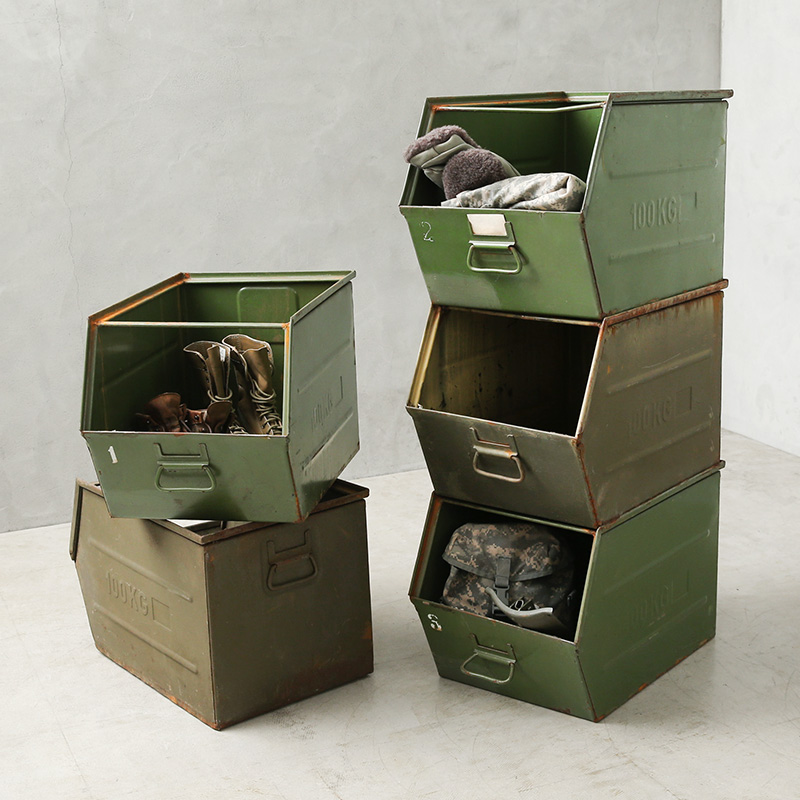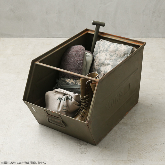 | 商品説明 | 実物 USED チェコ軍 ビンテージ スチール ストレージボックス / ストッカー のご紹介です。 チェコ軍からインダストリアルな雰囲気が漂うビンテージの大型メタル ストッカーボックスの登場です。 重厚なスチール製で、複数のボックスを積み重ねて使用できるスタッキング(スタックビン)設計が特徴です。 積み重ねた状態でも前面から内容物を取り出せて、雑多に物を入れておいてもほどよく整え感の出るデザイン。 無骨な見た目に、耐荷重は100KGと非常に丈夫な造りになっています。 収納力も抜群でアウトドアやガレージでの活用はもちろん、インダストリアル・アーミースタイルなお部屋にインテリアの一部として取り入れるだけでより本格的な雰囲気を味わうことが出来ます。 長年の使用によるキズ、擦れ、サビなども味としてお楽しみいただける貴重なアイテムです。 ※撮影に使用した小物は付属しません。 ※北海道・沖縄・離島への配送不可 ※こちらの商品は代金引換をご利用できません。 |