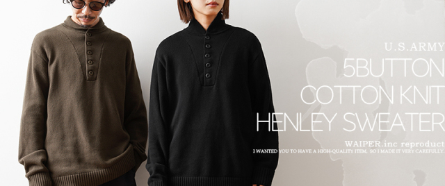 WAIPER.inc 米軍 5ボタン コットンニット ヘンリーネックセーター【WP1065】【T】